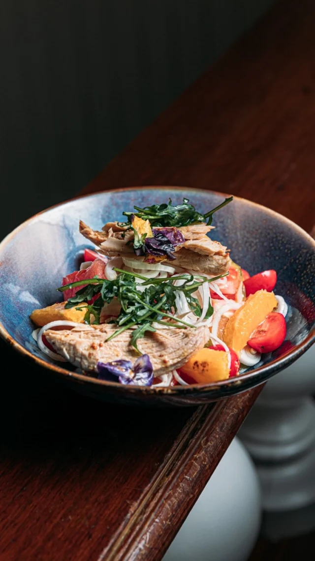 🍅 Frescura en cada bocado: tomates de temporada con ventresca de bonito y un toque de naranja.