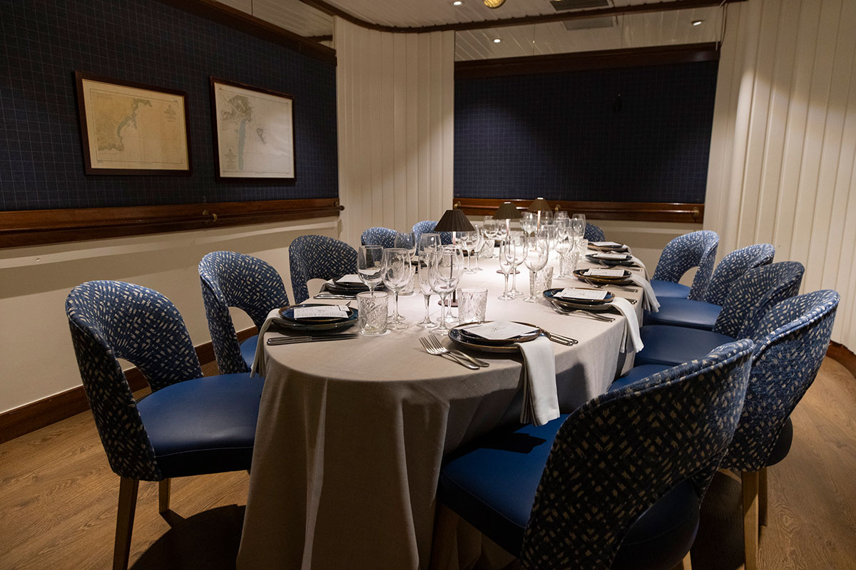 Somewhere between a ship’s cabin and a relaxed lounge. Any of these seven rooms is a luxurious getaway on the high sea. Their capacities range from 8 to 20 seats, and can be transformed to hold meetings, coffee breaks, business lunches or private events.